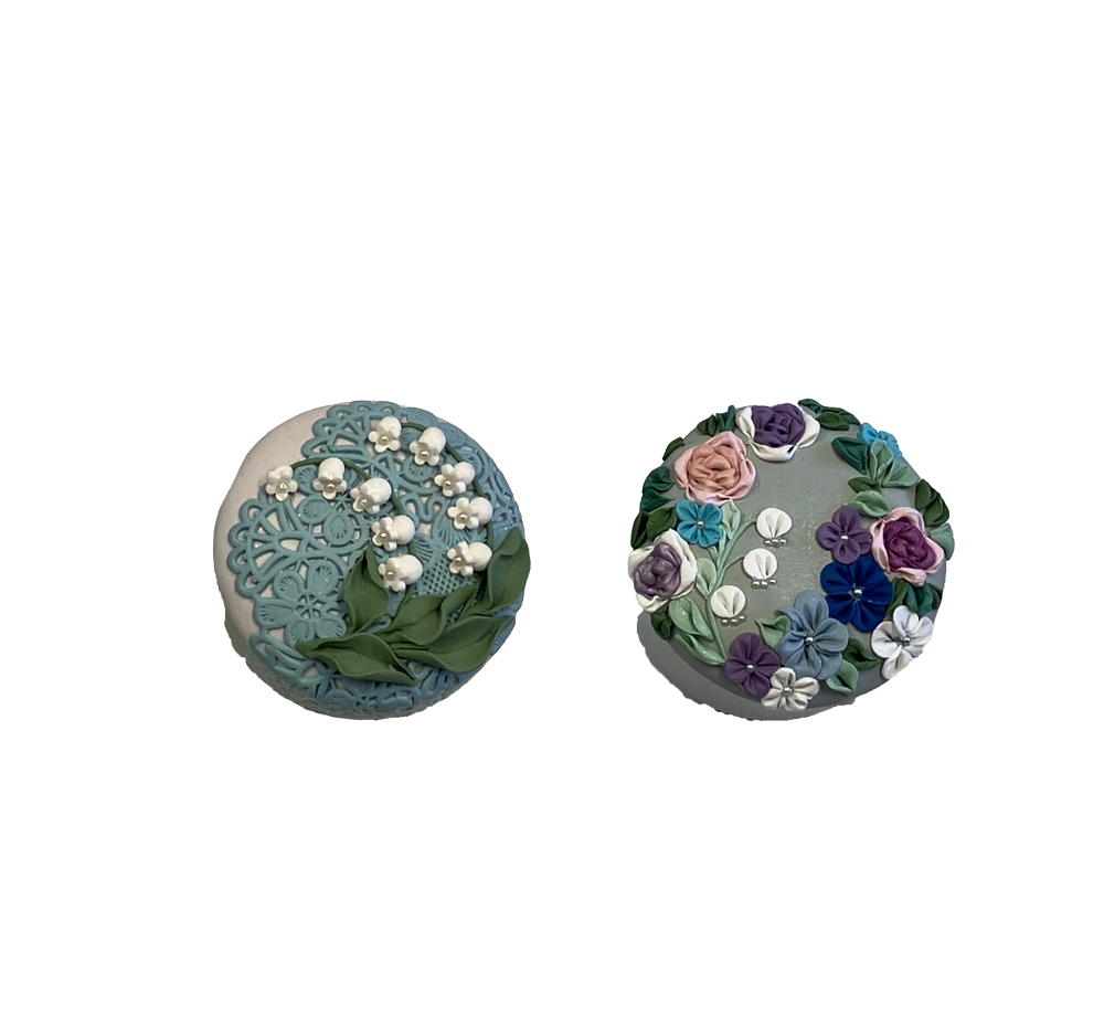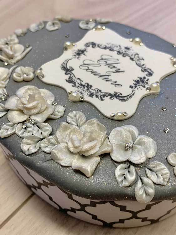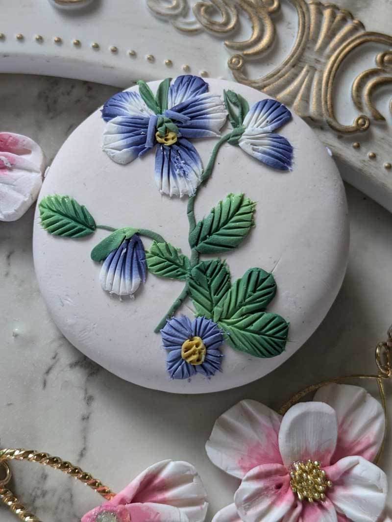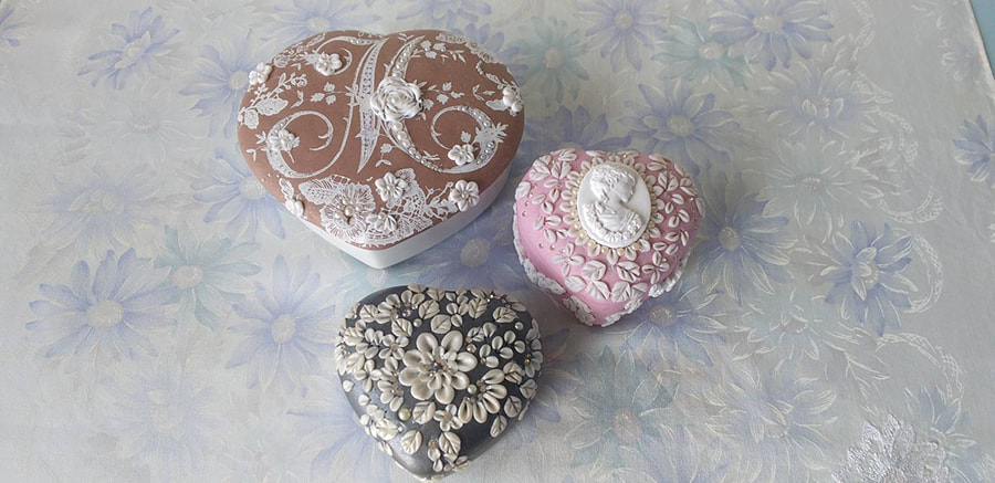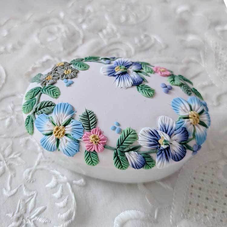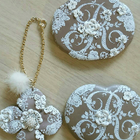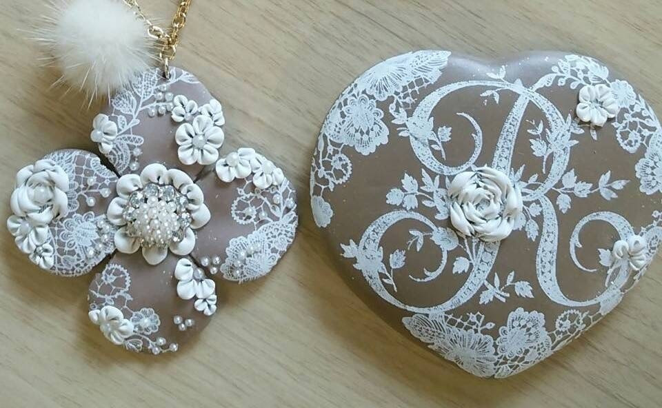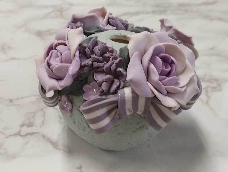 お好きな色のクレイにテクスチャーシートで優雅なデザインを施したら、ストーンやパールで飾りましょう。