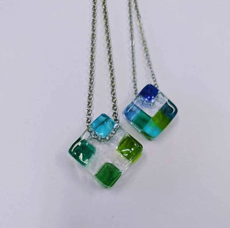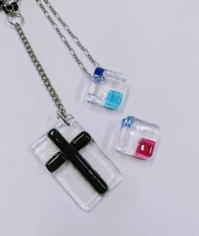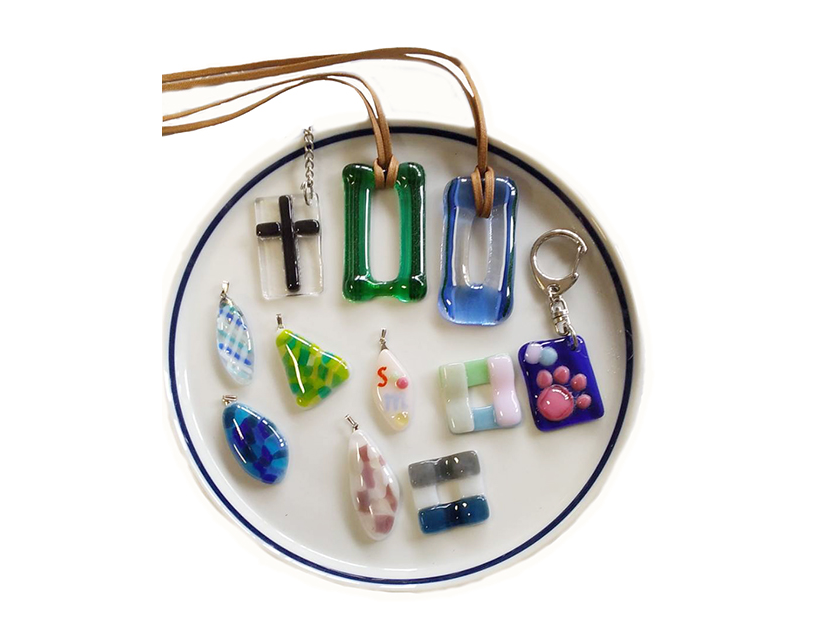 電気炉でガラスを溶かして多彩な色と造形を作り上げるアートです。ガラスで作る、オリジナルで可愛いアクセサリーや素敵なインテリアです。