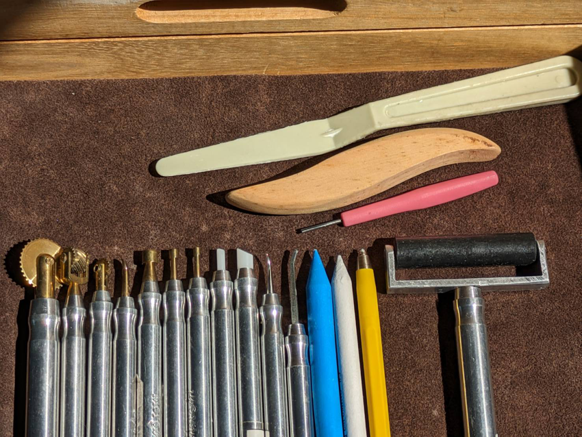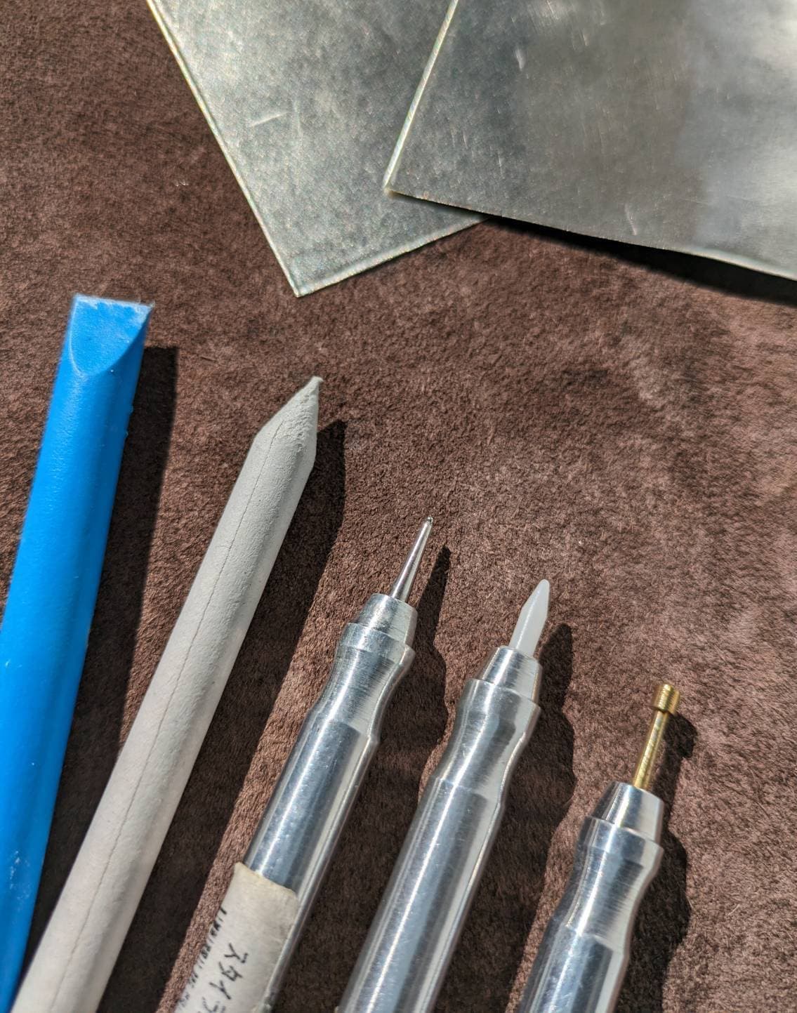 3.メタルシートの上に絵を置き、専用の道具で絵柄を描く